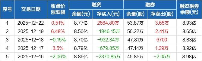 云铝股份:融资净买入2664.8万元,融资余额8.77亿元(12-22)
