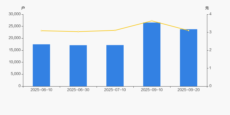 2025年6月10日至今,公司股东户数显著增长,区间涨幅为35.98%。2025年6月10日至2025年9月20日区间股价上涨0.32%。