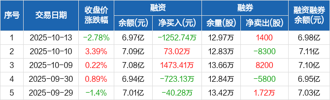 创维数字:融资净偿还1252.74万元,融资余额6.97亿元(10-13)