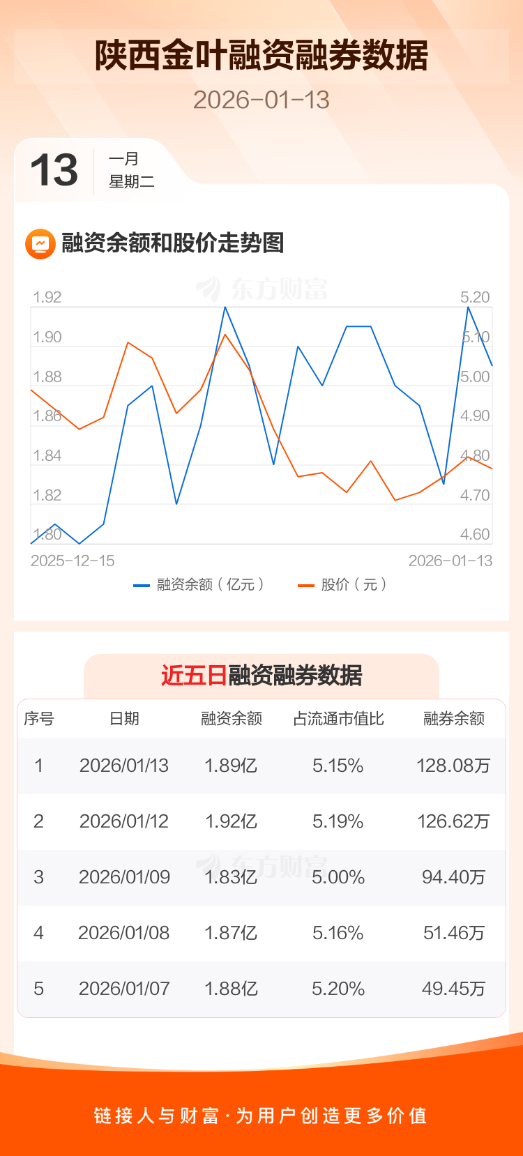 交易所最新数据显示,陕西金叶于2026年1月13日获融资买入1421.51万元,融资偿还1677.05万元,当日融资净偿还255.54万元。目前,该股融资余额1.89亿,占流通市值比例为5.15%。