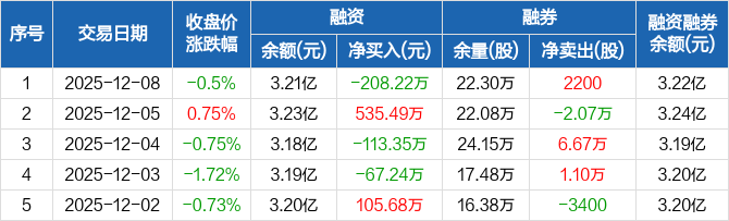 德展健康:融资净偿还208.22万元,融资余额3.21亿元(12-08)