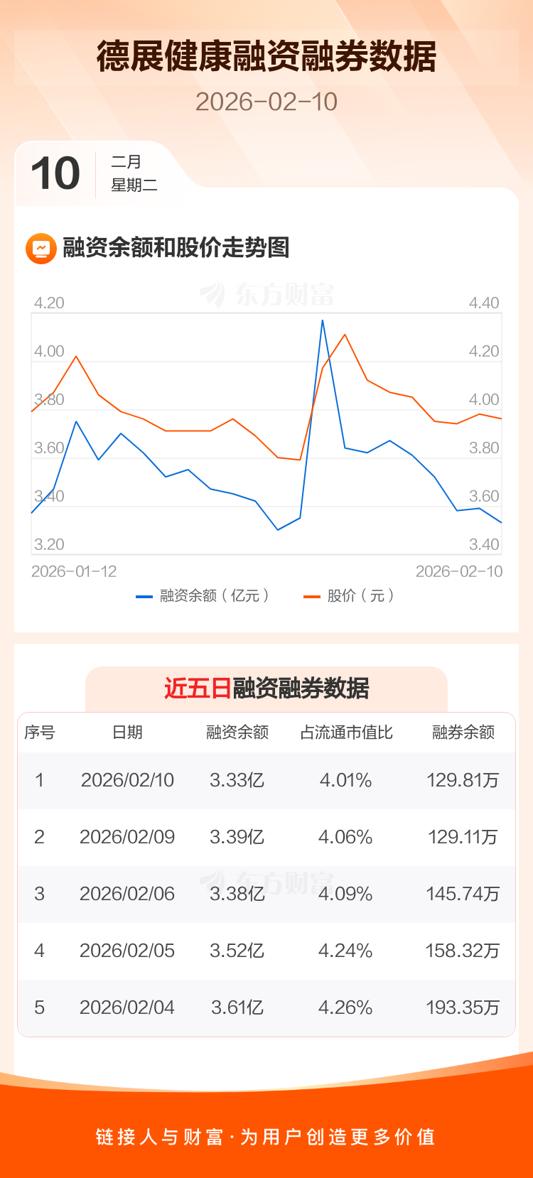 交易所最新数据显示,德展健康于2026年2月10日获融资买入601.97万元,融资偿还1147.55万元,当日融资净偿还545.58万元。目前,该股融资余额3.33亿,占流通市值比例为4.01%。