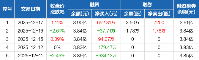 美利云:融资净买入652.31万元,融资余额3.9亿元(12-17)