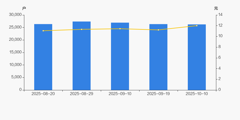 自2025年8月29日以来,公司股东户数连续3期下降,截至目前减幅为4.21%。2025年8月29日至2025年10月10日区间股价上涨6.12%。
