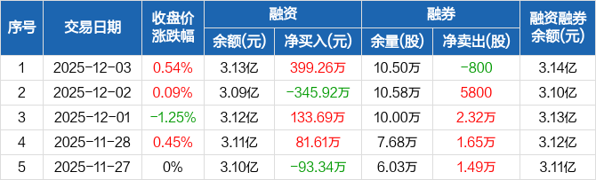 东莞控股:融资净买入399.26万元,融资余额3.13亿元(12-03)
