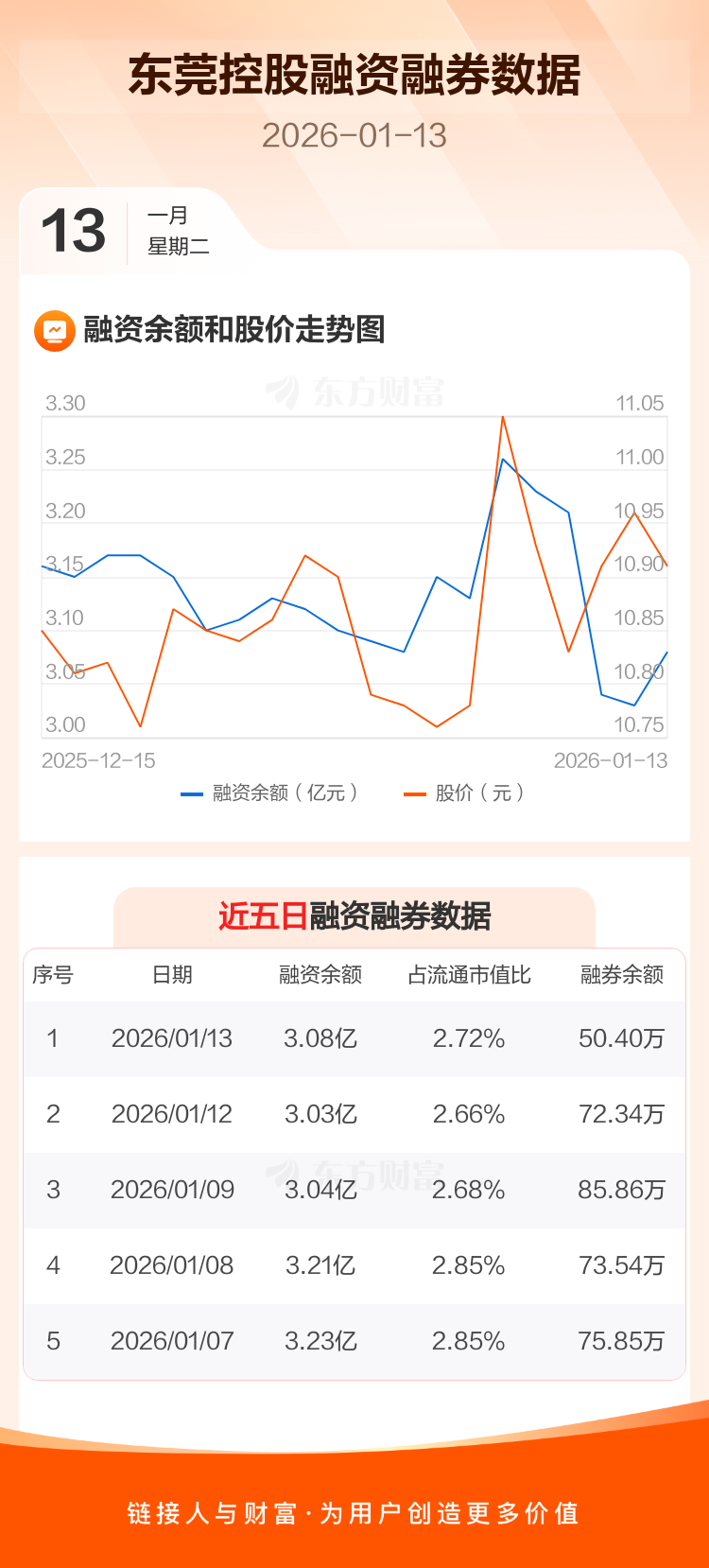 交易所最新数据显示,东莞控股于2026年1月13日获融资买入1538.91万元,融资偿还1039.02万元,当日融资净买入499.89万元。目前,该股融资余额3.08亿,占流通市值比例为2.72%。