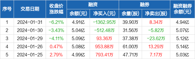 天音控股:融资净偿还1362.95万元,融资余额4.91亿元(01-31)