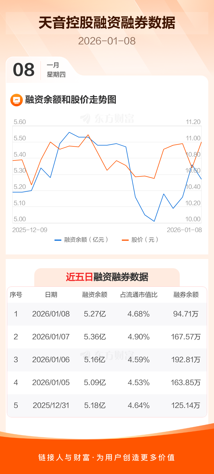 交易所最新数据显示,天音控股于2026年1月8日获融资买入4394.81万元,融资偿还5331.55万元,当日融资净偿还936.73万元。目前,该股融资余额5.27亿,占流通市值比例为4.68%。