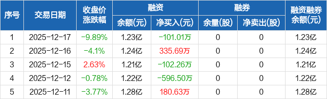 财信发展:融资净偿还101.01万元,融资余额1.23亿元(12-17)