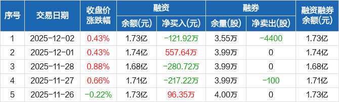 华茂股份:融资净偿还121.92万元,融资余额1.73亿元(12-02)