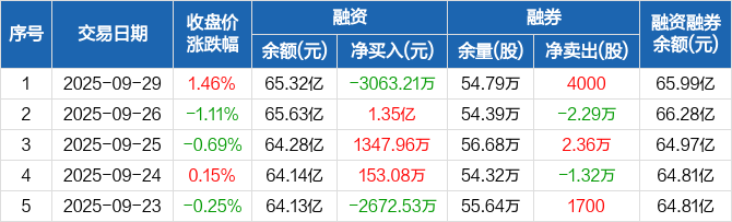 五粮液:融资净偿还3063.21万元,融资余额65.32亿元(09-29)