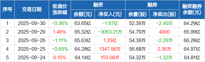 五粮液:融资净偿还1.67亿元,融资余额63.65亿元(09-30)