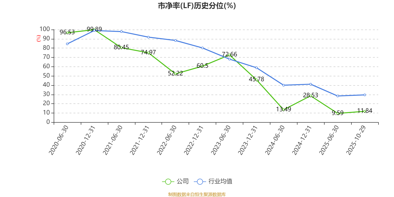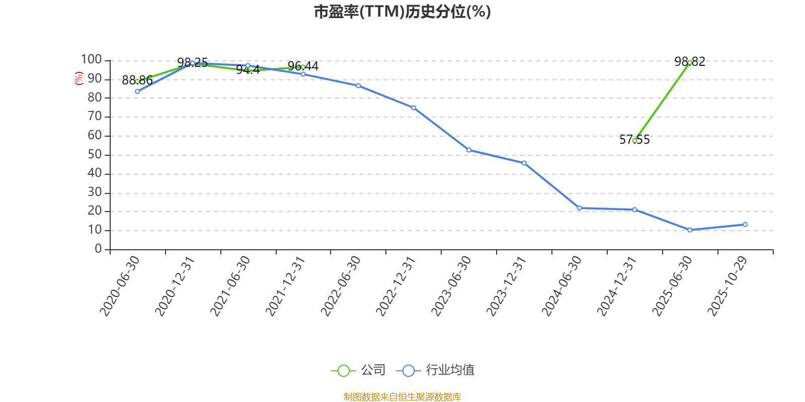 市盈率、市净率为负时,不显示当期分位数,会导致折线图中断。
