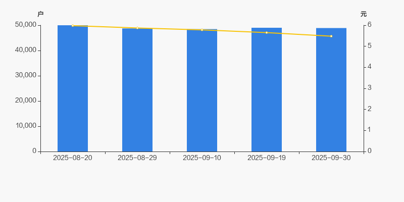 2025年8月20日至今,公司股东户数有所下降,区间跌幅为2.20%。2025年8月20日至2025年9月30日区间股价下降8.36%。