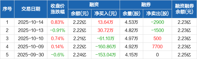 张裕A:融资净买入13.64万元,融资余额2.22亿元(10-14)
