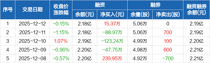 张裕A:融资净买入15.37万元,融资余额2.18亿元(12-12)