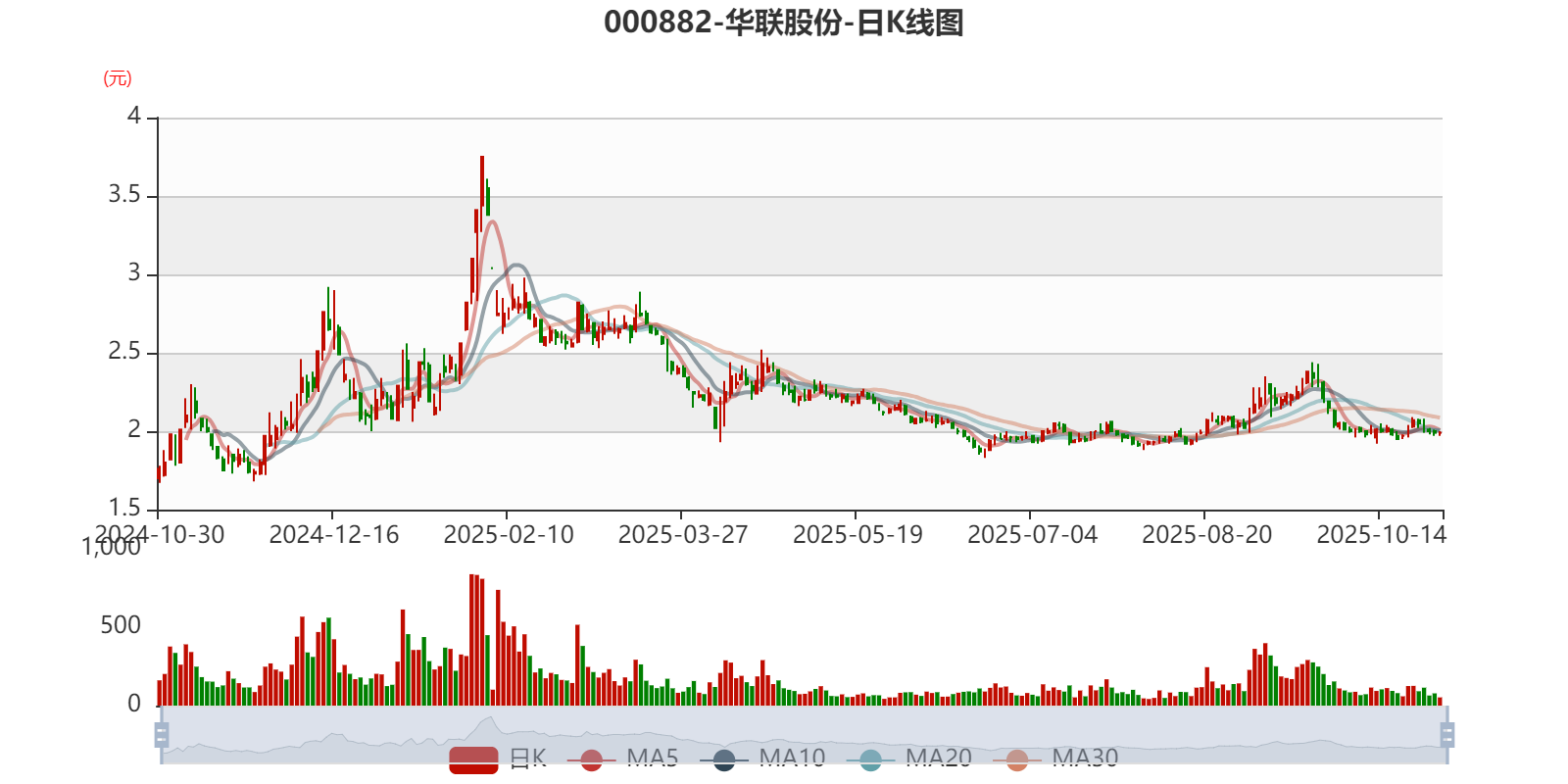 中证智能财讯华联股份(000882)10月30日披露2025年第三季度报告。前三季度公司实现营业总收入9.3亿元,同比下降15.07%;归母净利润亏损1.37亿元,上年同期盈利2952.33万元;扣非净利润亏损1.56亿元,上年同期盈利659.25万元;经营活动产生的现金流量净额为4.12亿元,同比下降38.16%;报告期内,华联股份基本每股收益为-0.0501元,加权平均净资产收益率为-2.01%。