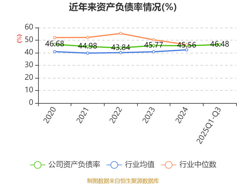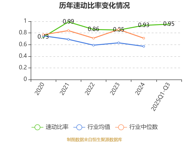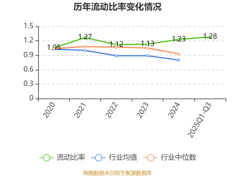 2025年前三季度,公司流动比率为1.28,速动比率为0.95。