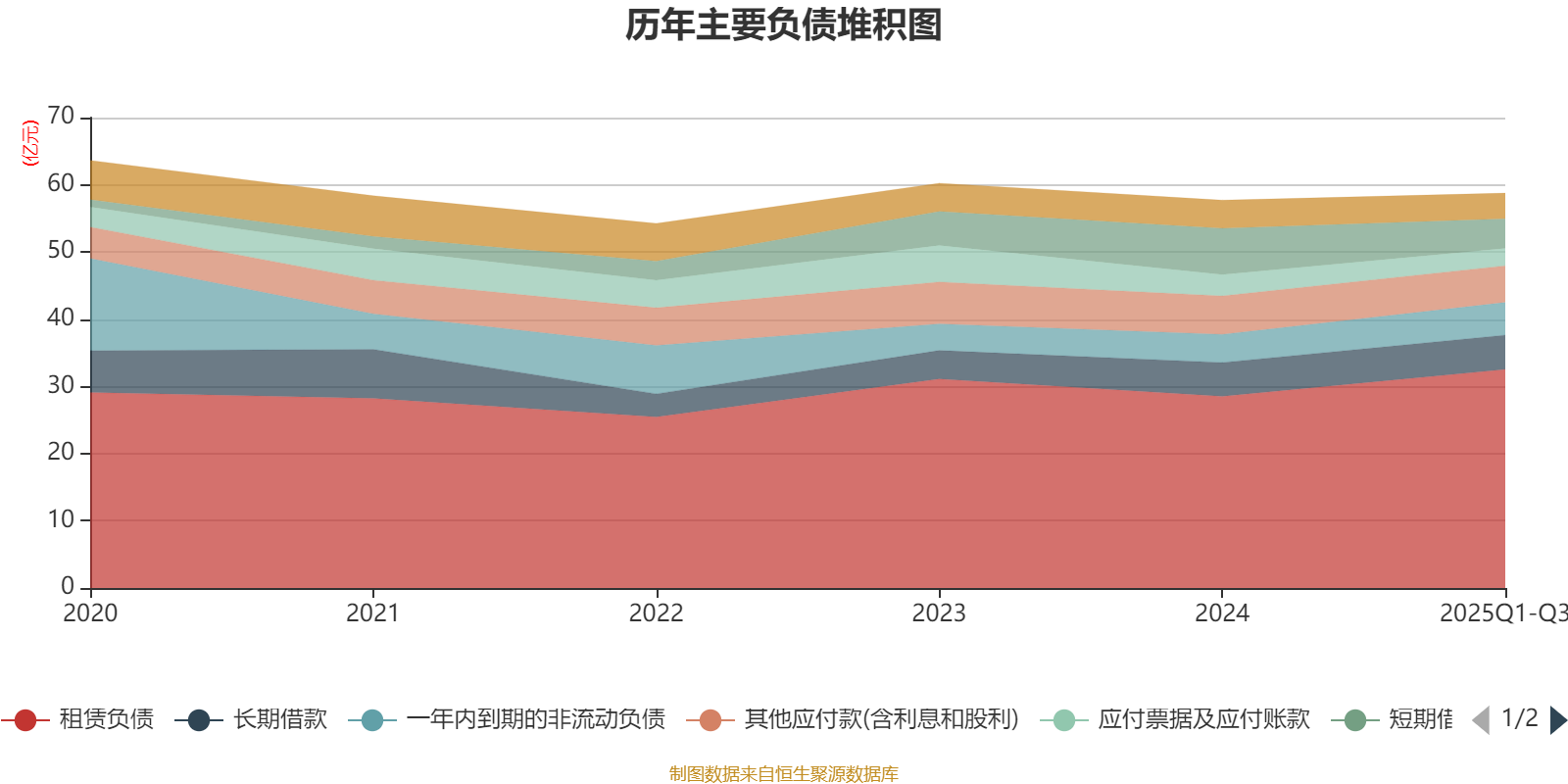 负债重大变化方面,截至2025年三季度末,公司租赁负债较上年末增加13.98%,占公司总资产比重上升3.2个百分点;短期借款较上年末减少35.71%,占公司总资产比重下降1.93个百分点;一年内到期的非流动负债较上年末增加16.26%,占公司总资产比重上升0.55个百分点;应付票据及应付账款较上年末减少19.2%,占公司总资产比重下降0.47个百分点。