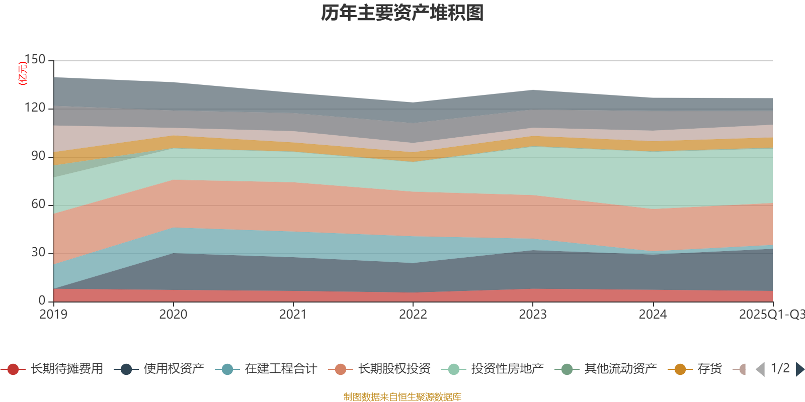 资产重大变化方面,截至2025年三季度末,公司使用权资产较上年末增加19.58%,占公司总资产比重上升3.43个百分点;货币资金较上年末减少29.38%,占公司总资产比重下降2.81个百分点;投资性房地产较上年末减少4.78%,占公司总资产比重下降1.28个百分点;交易性金融资产合计较上年末增加20.75%,占公司总资产比重上升1.08个百分点。