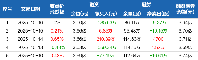 湖北能源:融资净偿还585.63万元,融资余额3.6亿元(10-16)