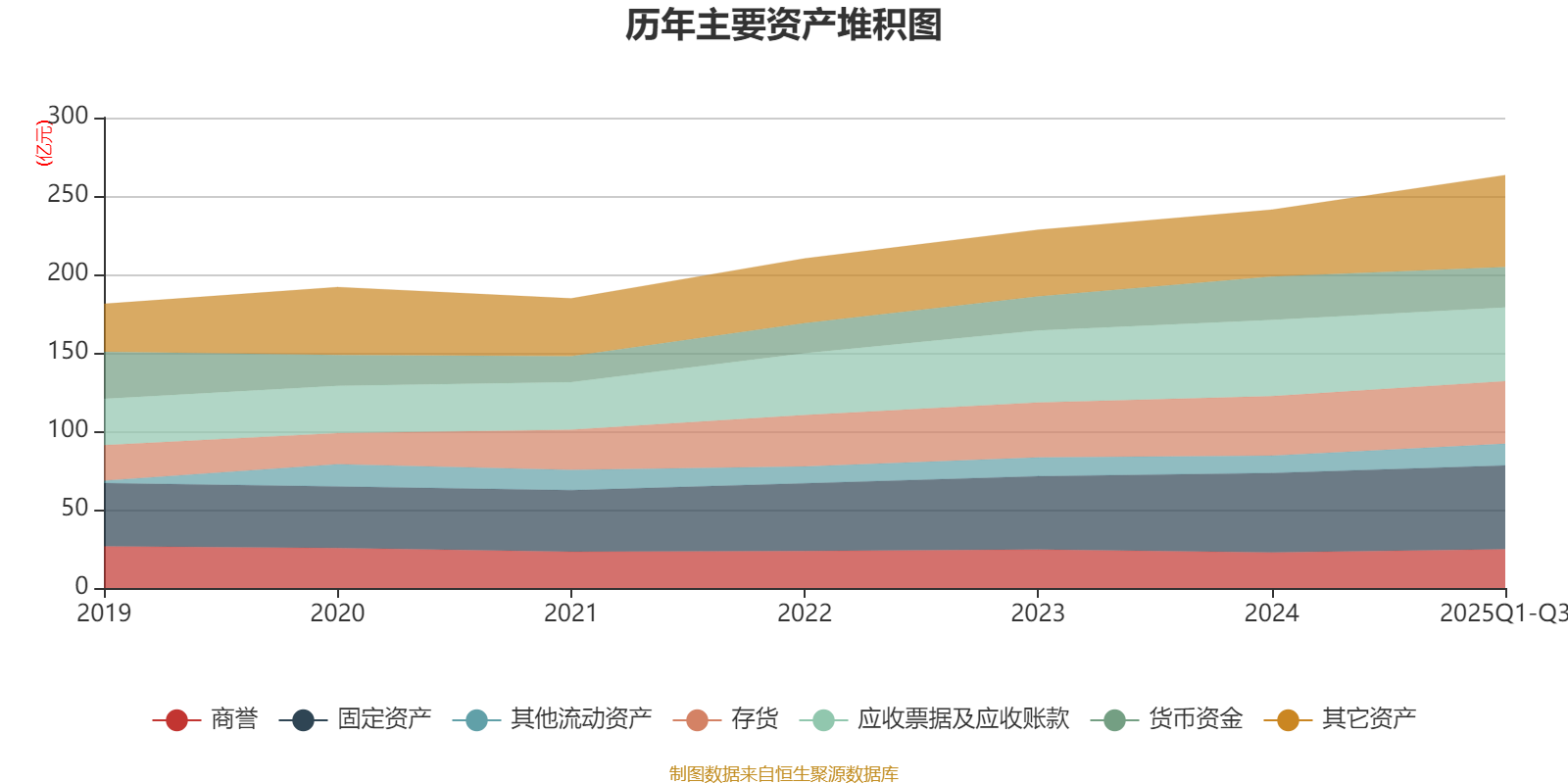 资产重大变化方面,截至2025年三季度末,公司应收票据及应收账款较上年末减少3.37%,占公司总资产比重下降2.31个百分点;交易性金融资产合计较上年末增加103.06%,占公司总资产比重上升1.88个百分点;货币资金较上年末减少6.78%,占公司总资产比重下降1.68个百分点;应收款项融资较上年末增加81.7%,占公司总资产比重上升1.31个百分点。