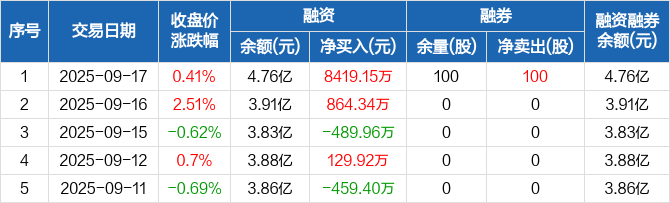 峨眉山A:融资余额4.76亿元,创历史新高(09-17)