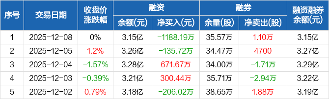 鞍钢股份:融资净偿还1188.19万元,融资余额3.15亿元(12-08)