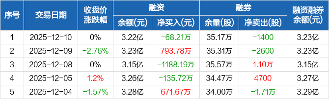 鞍钢股份:融资净偿还68.21万元,融资余额3.22亿元(12-10)