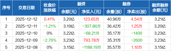 鞍钢股份:融资净买入123.65万元,融资余额3.2亿元(12-12)
