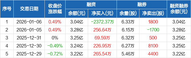现代投资:融资净偿还2372.37万元,融资余额3.04亿元(01-06)