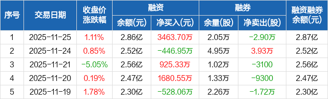 新洋丰融资融券信息显示,2025年11月25日融资净买入3463.7万元;融资余额2.86亿元,较前一日增加13.76%。