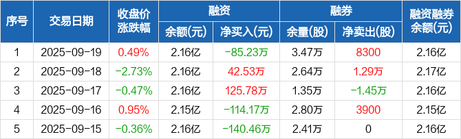大亚圣象:融资净偿还85.23万元,融资余额2.16亿元(09-19)