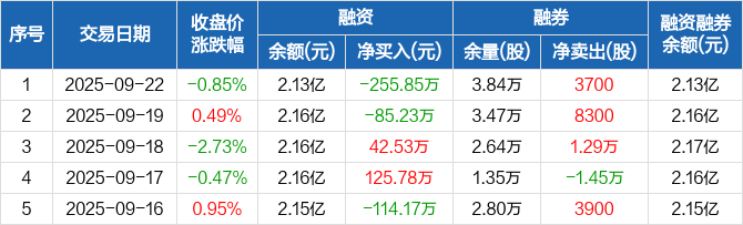 大亚圣象:融资净偿还255.85万元,融资余额2.13亿元(09-22)
