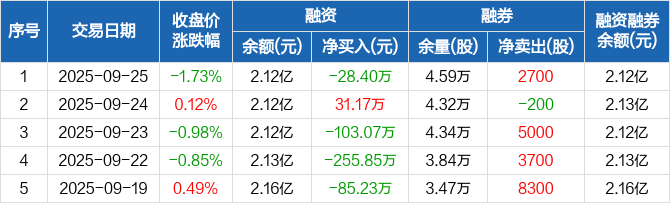 大亚圣象:融资净偿还28.4万元,融资余额2.12亿元(09-25)