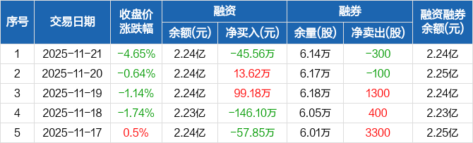 大亚圣象:融资净偿还45.56万元,融资余额2.24亿元(11-21)