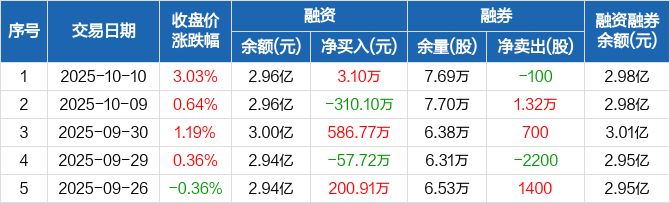钱江摩托:融资净买入3.1万元,融资余额2.96亿元(10-10)