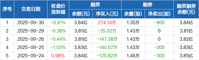 华特达因:融资净买入274.14万元,融资余额3.84亿元(09-30)