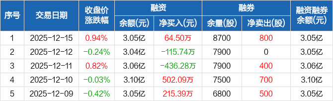 华特达因:融资净买入64.5万元,融资余额3.05亿元(12-15)