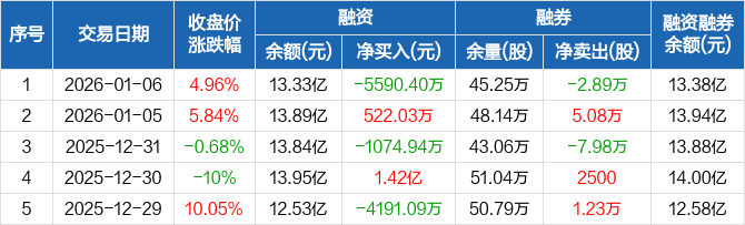 电广传媒:融资净偿还5590.4万元,融资余额13.33亿元(01-06)