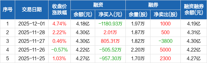 河钢资源:融资净偿还1180.93万元,融资余额4.18亿元(12-01)