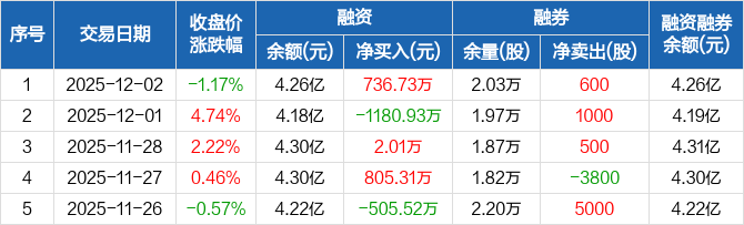 河钢资源:融资净买入736.73万元,融资余额4.26亿元(12-02)