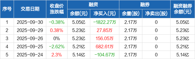 福星股份:融资净偿还1822.27万元,融资余额5.05亿元(09-30)