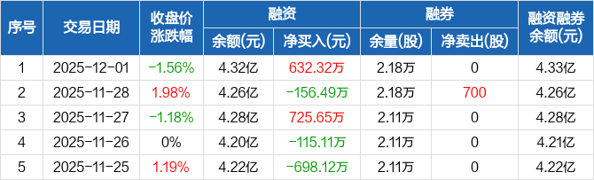 福星股份:融资净买入632.32万元,融资余额4.32亿元(12-01)