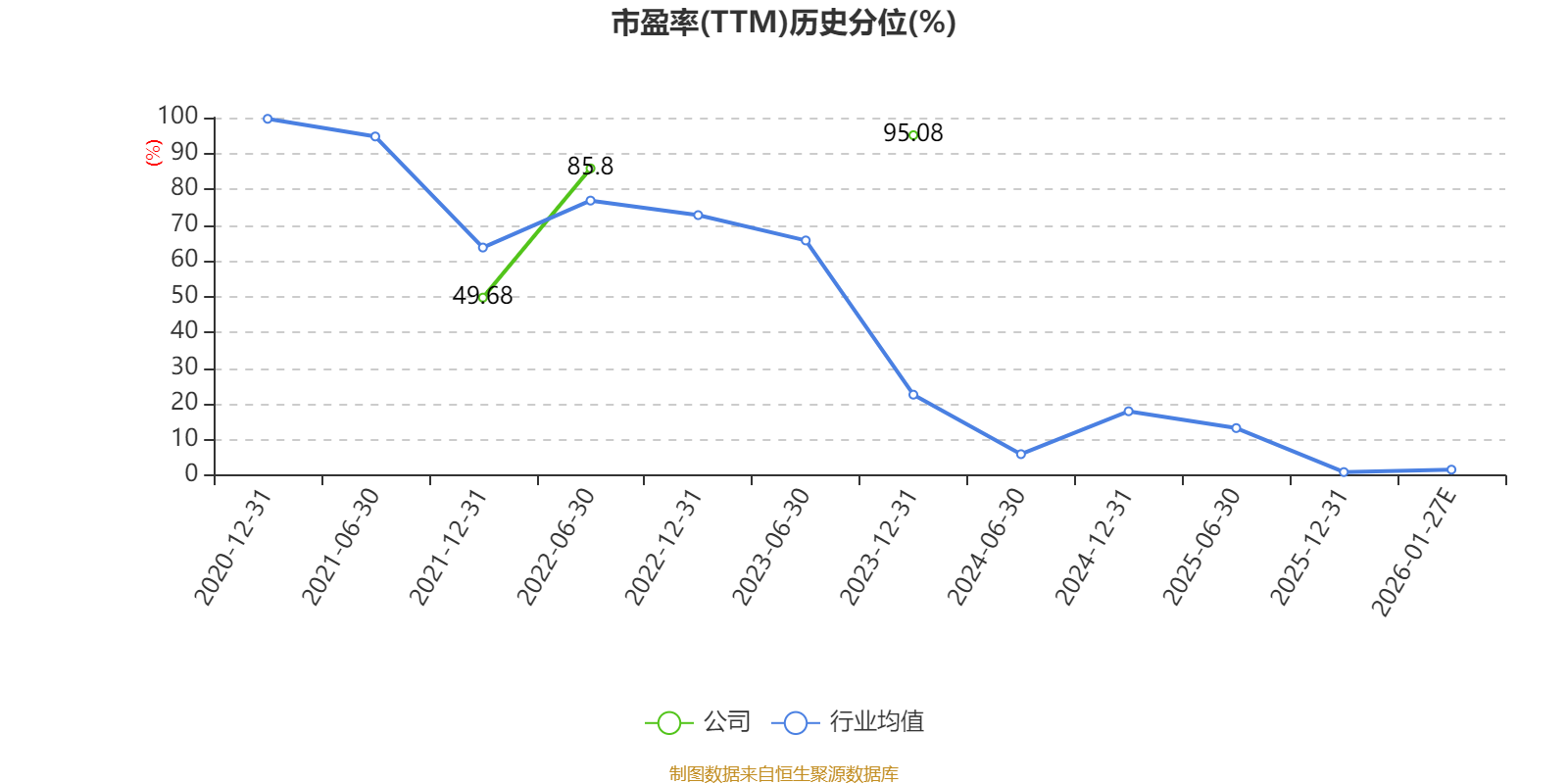 以本次披露业绩预告均值计算,公司近年市盈率(TTM)图如下所示: