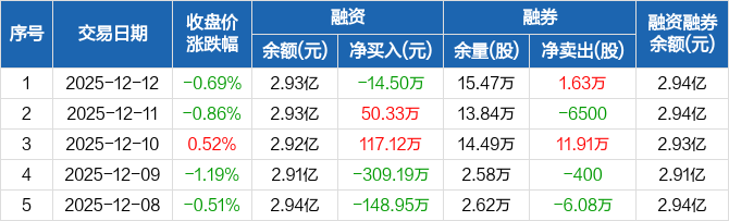 中粮科技:融资净偿还14.5万元,融资余额2.93亿元(12-12)
