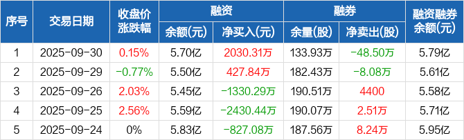 华菱钢铁:融资净买入2030.31万元,融资余额5.7亿元(09-30)