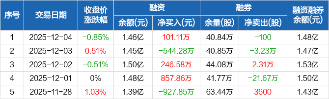 冀中能源:融资净买入101.11万元,融资余额1.46亿元(12-04)