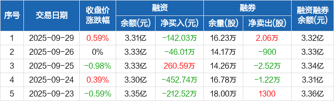 重药控股:融资净偿还142.03万元,融资余额3.31亿元(09-29)