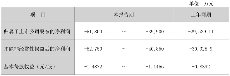 1月26日,广济药业(000952)发布公告,预计2025年度归母净利润约亏损5.18亿元至3.99亿元。具体数据如下: